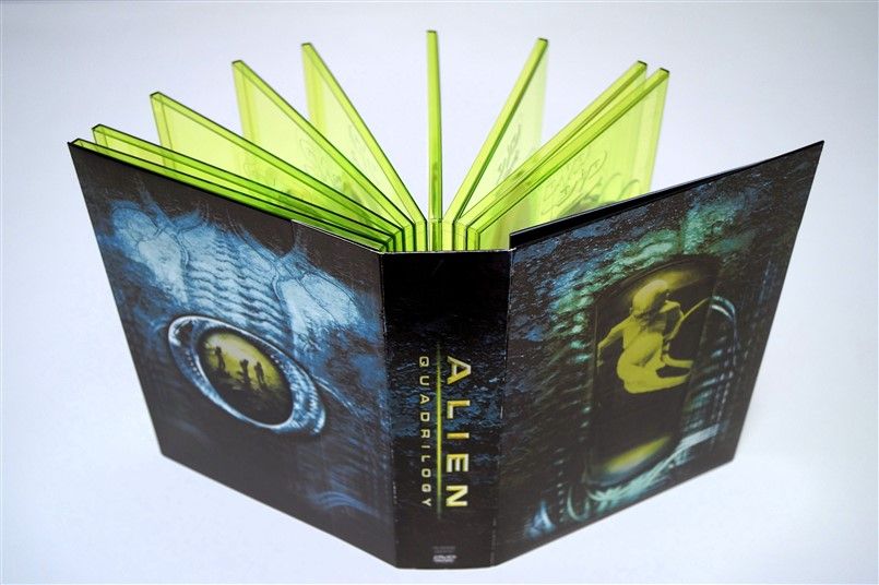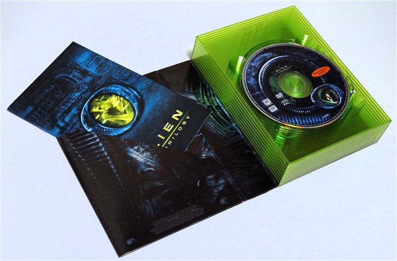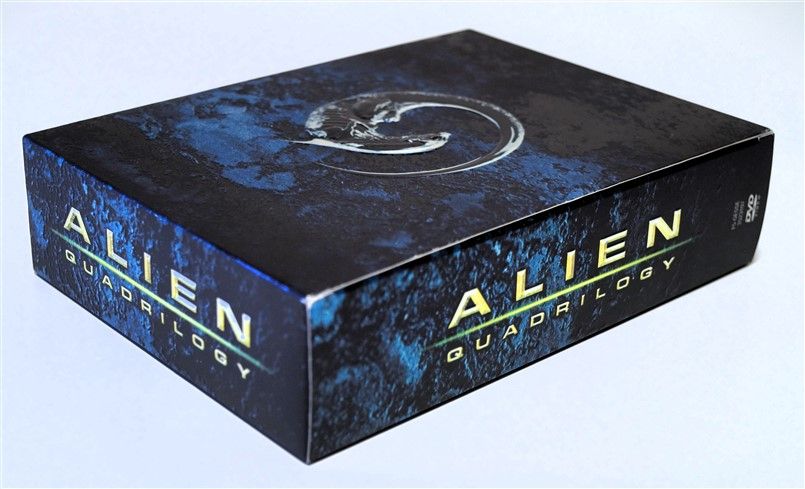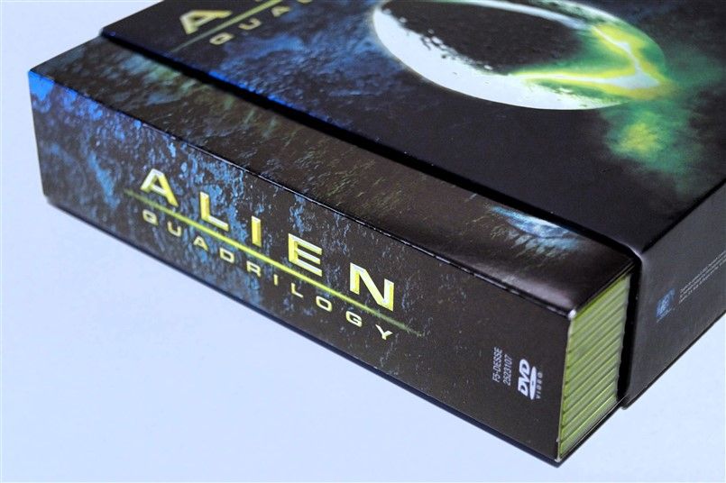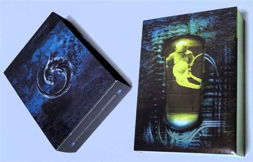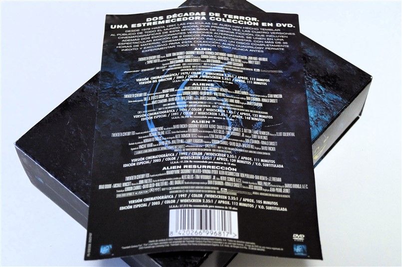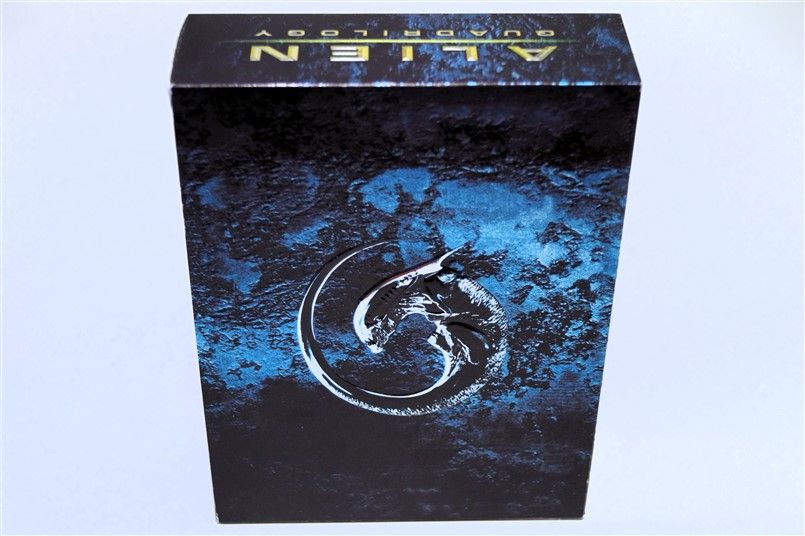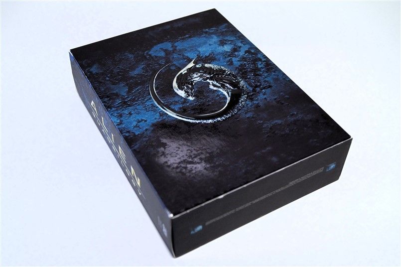 Tipo de estuche: Giftset contedor de digistak de 9 palas con funda de cartón, esta con contraportada limpia y detalles en relieve, conteniendo en bolsillo interno libreto con fotografías e información del contenido de los discos (textos en castellano) y 9 discos con las 4 primeras entregas de la saga, y busto con peana de casi 4 kg en total, este de tacto gomoso rígido y carcasa plástica superior extraíble para poder alojar los 9 discos del digistak