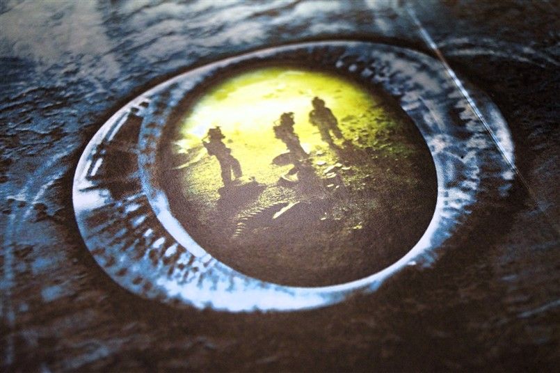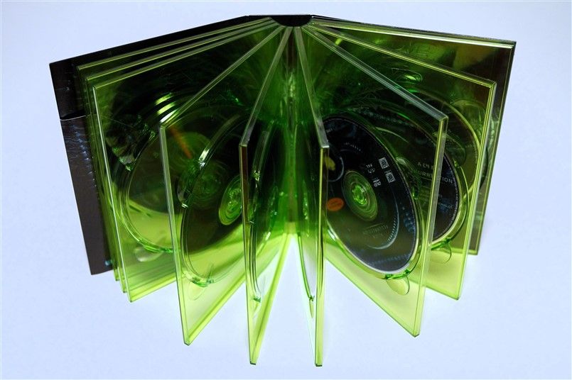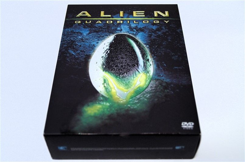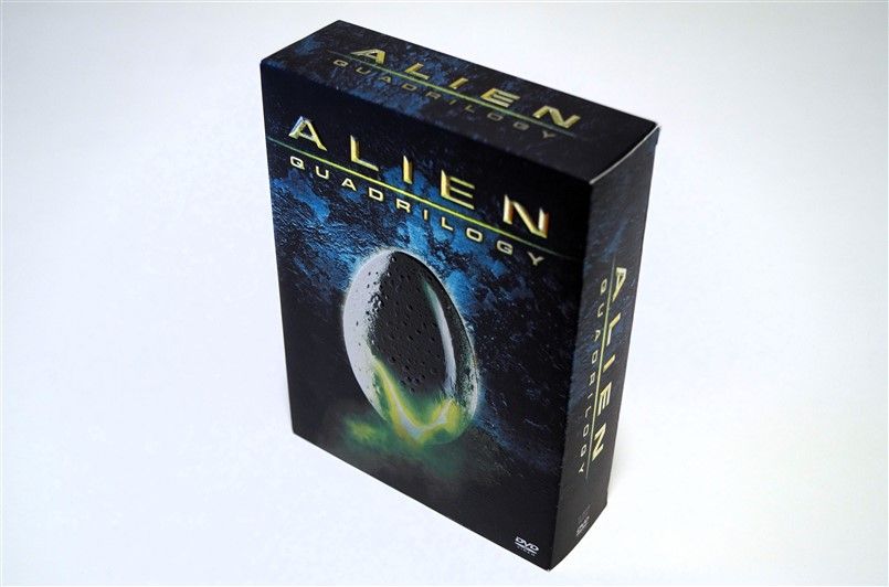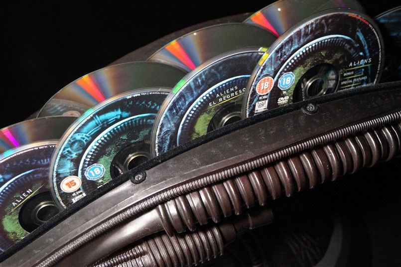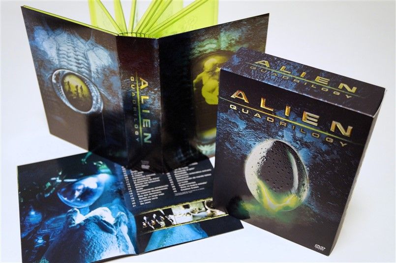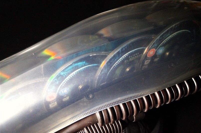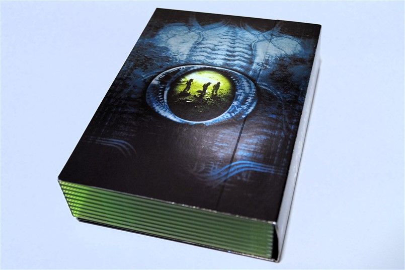 Tipo de estuche: Giftset contedor de digistak de 9 palas con funda de cartón, esta con contraportada limpia y detalles en relieve, conteniendo en bolsillo interno libreto con fotografías e información del contenido de los discos (textos en castellano) y 9 discos con las 4 primeras entregas de la saga, y busto con peana de casi 4 kg en total, este de tacto gomoso rígido y carcasa plástica superior extraíble para poder alojar los 9 discos del digistak