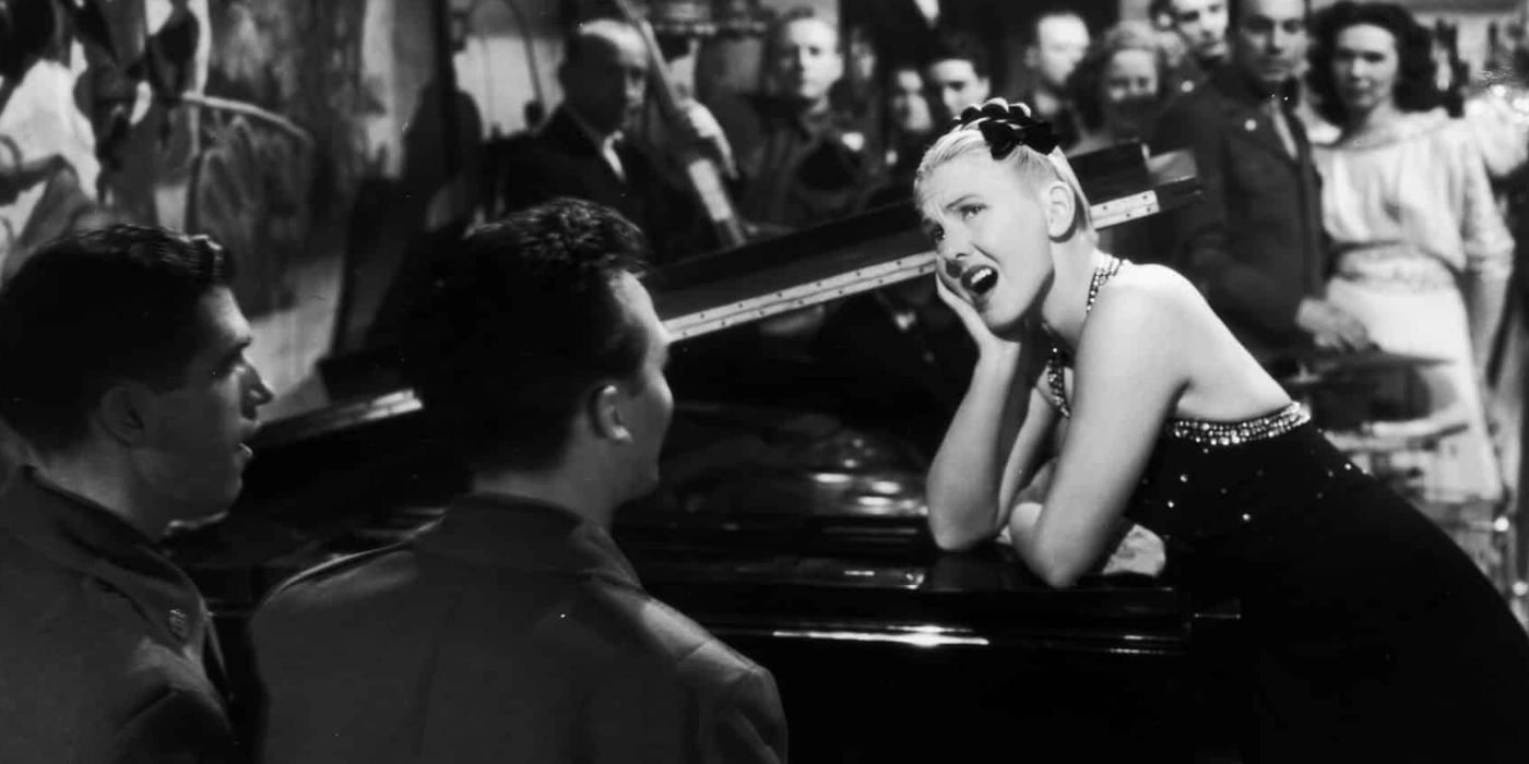 sin embargo a pesar de toda esa cruda realidad, había una hermosa historia de amor a dos bandas, entre un capitán y dos mujeres de lo mas dispares: la norteamericana simplona y la alemana descarada, siendo esta última la que nos llega al alma, aún siendo retratada como "nazi", nos resulta mas atrayente, si es que Marlene brilla aquí con luz propia, me parece magistral su trabajo, tanto como actriz y como cantante, que resulta electrizante, ya que no posee una gran voz, pero si mucha sensualidad, que te atrapa. Las tres tres canciones son magníficas.