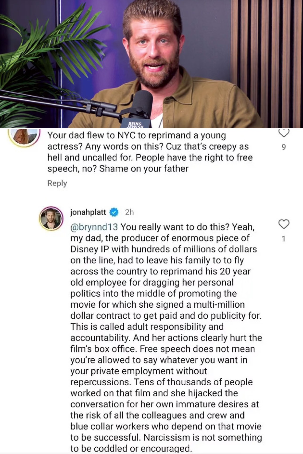 Jonah Platt está destrozando a la actriz de 23 años por ponerse política y arruinar a Blancanieves.