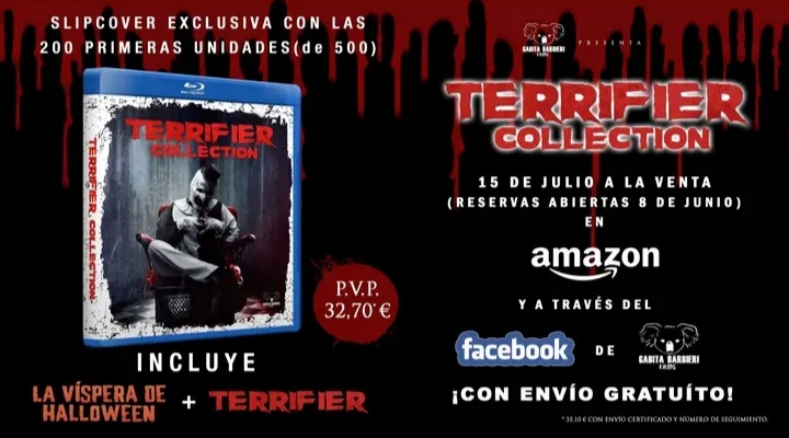 Pues la acaba de sacar en preventa hoy Gabita tanto Terrifier como La Vispera de Halloween de cuya pelicula se hizo el spin off de Terrifier. Edicion limitada a 500 unidades con licencia de Wild Ducks y Epic Pictures. Sorpresa mayuscula, no me esperaba este pack y por mi parte reservadisima.