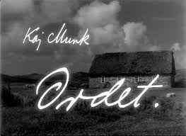 Ordet es la adaptación de una obra de teatro, estrenada en 1932 (aunque algunas fuentes dan 1925 como fecha de redacción del texto), del danés Kaj Munk, pastor luterano y popular dramaturgo, fusilado por los alemanes en 1944, muerte que le otorgó la condición de mártir de la ocupación de Dinamarca. La obra, inspirada al parecer por un acontecimiento sucedido en la parroquia de Munk, en Jutlandia, ya había sido llevada al cine doce años antes, en Suecia, por Gustaf Molander (film de la Svensk Filmindustri que comenté en el otro rincón), estrenada casi al mismo tiempo que Vredens dag, justo en el momento en que Dreyer decidió exiliarse al país vecino.