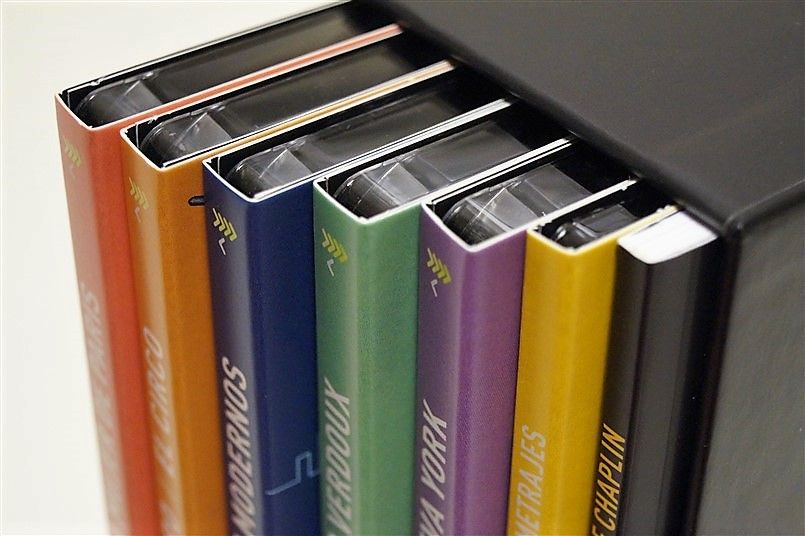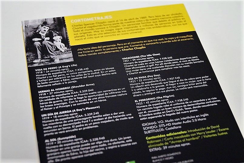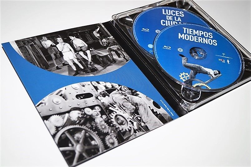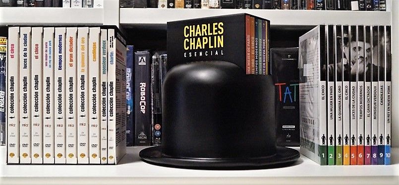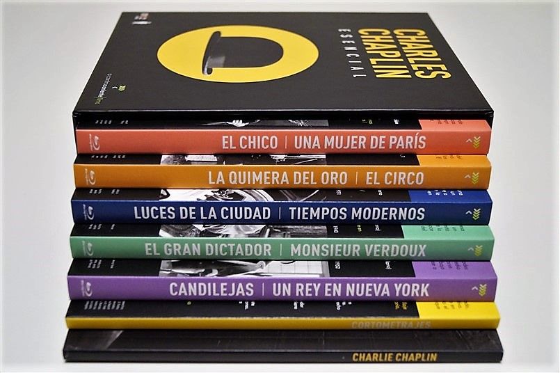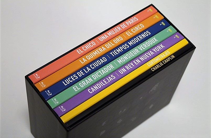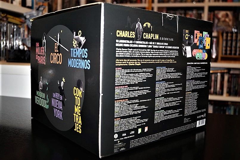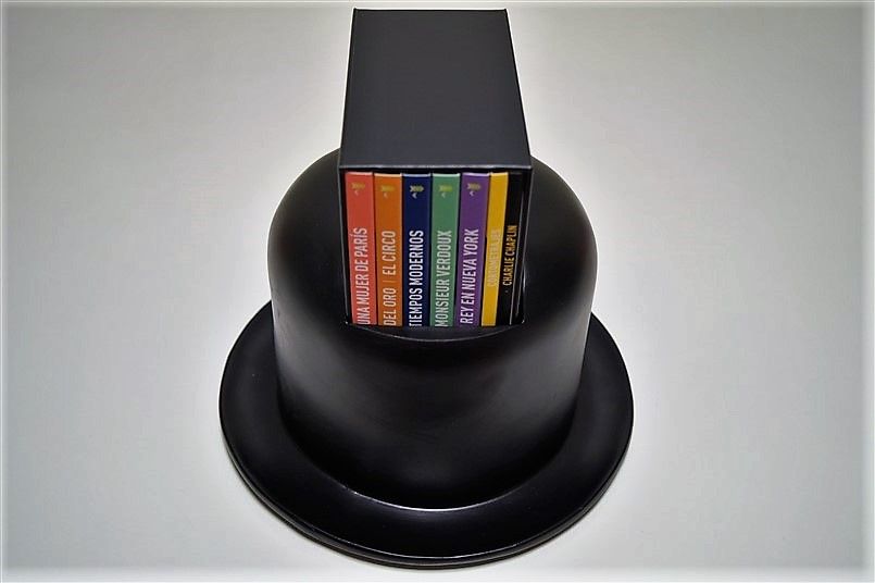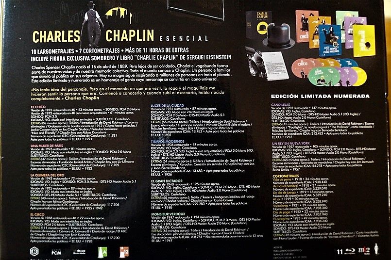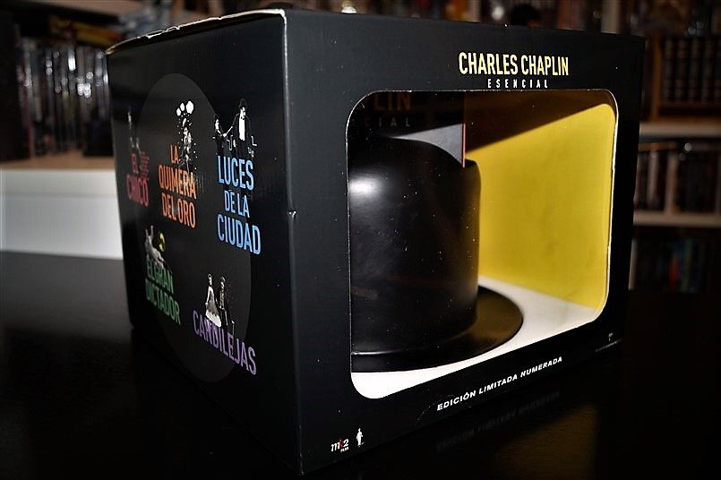 Tipo de estuche: Giftset, limitado y numerado a 1.000 unidades, de cartón ilustrado con ventanilla tras la que se puede ver figura de resina imitando el bombín de Chaplin, siendo este contenedor de pack de cartón robusto y contraportada limpia, albergando certificado con la numeración de la edición, libro de 52 páginas escrito por Serguei Eisentein y 6 digipak de 2 palas cada uno con un total de 11 discos (10 largometrajes + 1 cortometrajes)