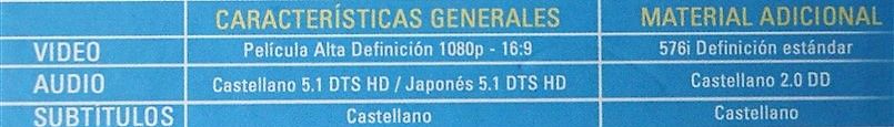 Tipo de estuche: Digibook de 24 páginas con imégenes e información del film (textos en castellano), conteniendo dos discos (bd+dvd extras)