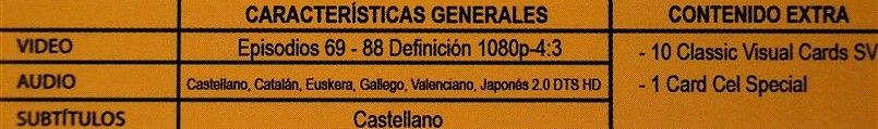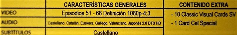 Tipo de estuche: Digipak con funda de cartón cuyo lomo forma un mural con el resto de los próximos box, de tres palas contenedoras de: 4 discos, 10 tarjetas símil de las clásicas japonesas y 1 tarjeta especial cartón/cell