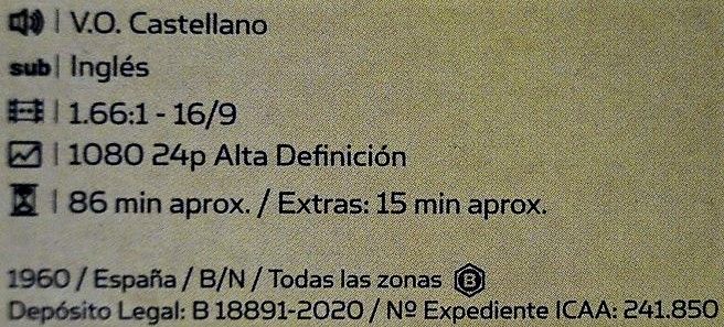 Tipo de estuche: Funda slipcover de cartón contenedora de estuche plástico con diferente diseño en portada (cartel original), libreto de 12 páginas con fotografías e información del film (textos en castellano) y disco bd