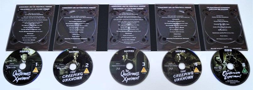 Tipo de estuche: Boxset de cartón robusto forrado con símil de piel, con rótulos grabados y contraportada limpia, albergando en su interior cajón de cartón robusto ilustrado contenedora de 8 postales reproducciones de los fotocromos ingleses, póster reversible con la cartelería original, réplica cómic de época de 56 páginas, libreto de 180 páginas con fotografías e información del film (textos en inglés) y dígipak de 5 palas con 5 discos (2 bd película+2uhd película+bd extra)