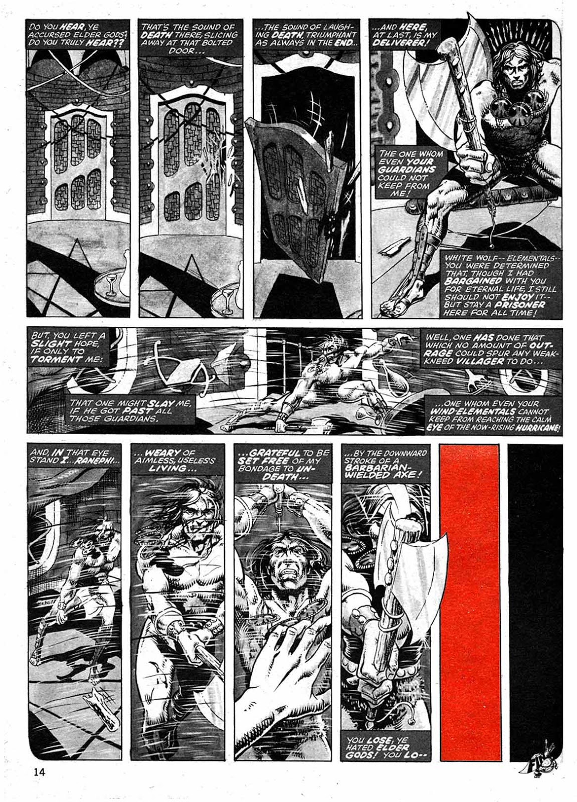 Del material que falta supongo que la razón, aparte de la evidente falta de derechos de Red Sonja y Kulll, es porque era un material que no se había creado para la revista sino que procedían (artículos e ilustraciones) de algún fanzine de la época. Alguna cosa creo que se había publicado en el fanzine Amra, por ejemplo, e imagino que Marvel ni siquiera se ha molestado en negociar los derechos de reproducción de nuevo. Pero aclaro que es una hipótesis mía. Una pena porque las ilustraciones de Corben, Jeff Jones y Stephen Fabian eran superlativas.