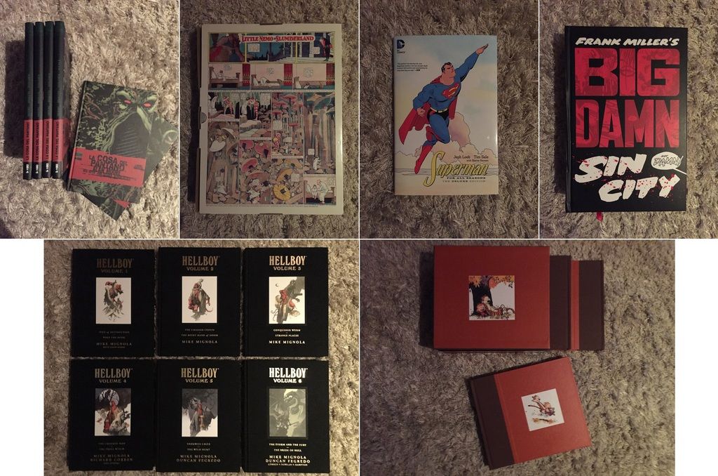 La Cosa del Pantano, Little Nemo in Slumberland, Superman For All Seasons The Deluxe Edition, Hellboy Library Edition, Big Bamn Sin City y The Complete Calvin and Hobbes.