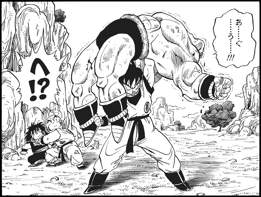 En ese momento Goku acaba de romperle la espalda, en la imagen original nappa tiene los 2 pies apuntando hacia abajo, en señal de que no puede mover las piernas.