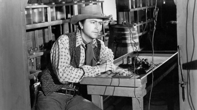 Esa es la impresión que siempre me da esta película. Como película de género me parece correcta, pero no pasa de ser una más, como hay tantas otras, tan fácil de visionar como de olvidar. Aquí, en lugar de las vías del ferrocarril, lo que se tiende son los cables del telégrafo (de Omaha a Salt Lake City), en el camino imparable hacia la conquista del Oeste norteamericano. Para ello, la película se acoge a toda la panoplia habitual de tópicos del género: el outlaw ambiguo, Vance Shaw (Randolph Scott, que siempre me ha parecido un actor un tanto anodino, salvo en su ciclo de films con Boetticher y alguna otra excepción, como la peckipahiana Ride the High Country); el petimetre de la Costa Este (al que le gastarán la típica broma del caballo salvaje para que monte), Richard Blake (Robert Young, al que me cuesta verlo en este papel), que, cómo no, será rival de Shaw en el amor de la joven Sue (Virginia Gilmore, desaprovechada, en un papel que no va mucho más allá del de hacer de bote de miel para las moscas-macho que la rodean; nos la volveremos a encontrar en el hilo de Renoir);