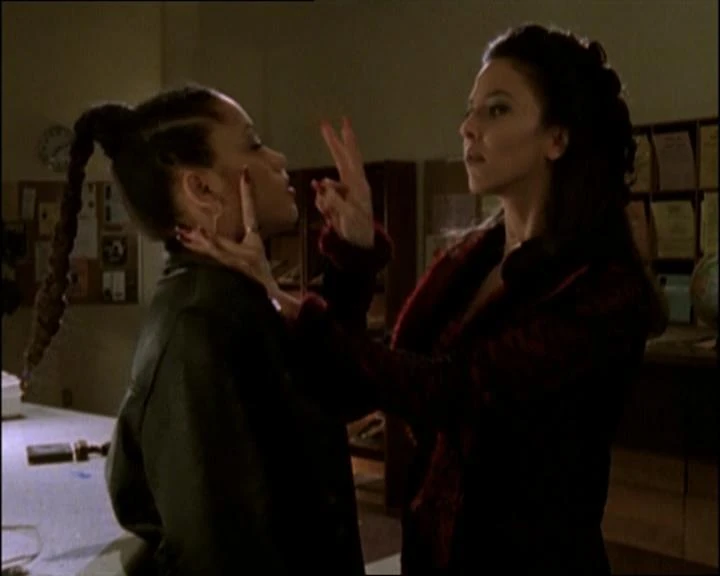 Y vaya si lo logra... Consigue engañar a Giles quien en vez de a Drusilla está viendo a Jenny Calendar y, claro, termina soltando la información necesaria: se necesita la sangre de Angel.