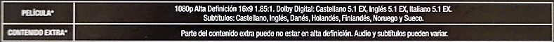 Formato de sonido: Dolby Digital: English 5.1 EX, French 5.1 EX, German 5.1 EX; English 2.9 ADS