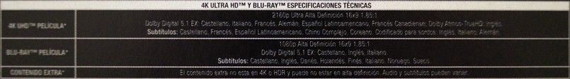 Formato de sonido: Dolby Digital: English 5.1 EX, French 5.1 EX, German 5.1 EX; English 2.9 ADS