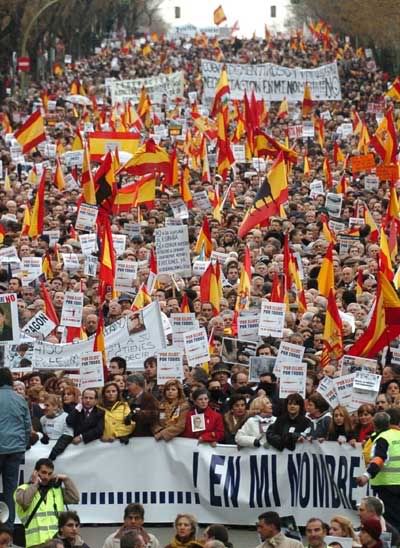 El fin último de esta panda de asesinos no es otro que la desintegración del estado. Por tanto, la bandera como representación de dicho estado tiene su lugar, perfectamente justificado, en la manifestación. Que dicha presencia provoque repugne en algunos no tiene, por tanto, nada que ver con la conveniencia del hecho, sino con connotaciones más profundas que son las que no acabo de entender. De ahi mi anotación respecto lo que pasa en otros paises y mi absoluta extrañeza por la actitud. Ojo, generalizada, no estoy personalizando.