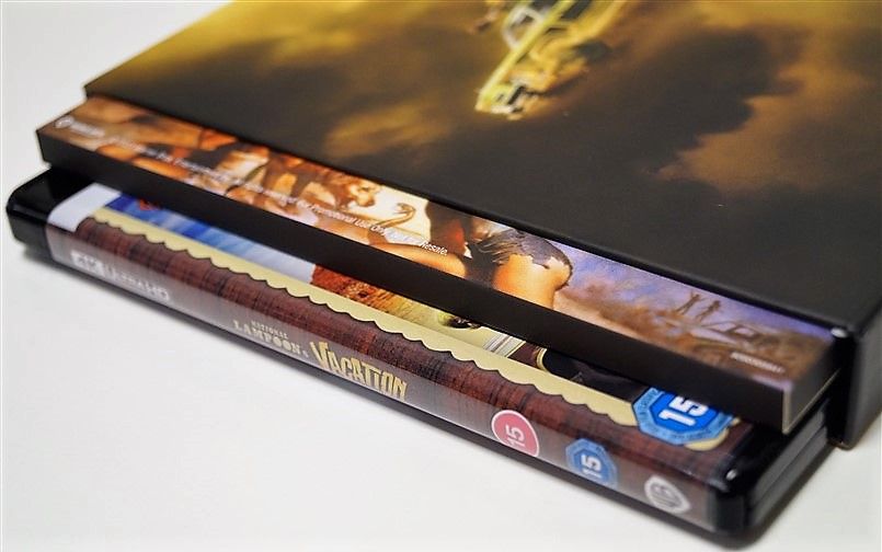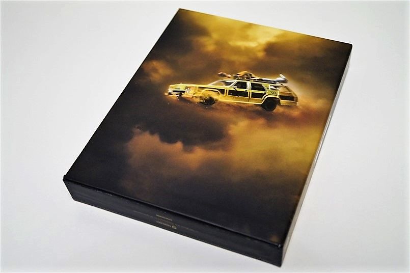Tipo de estuche: Boxset de cartón rígido con contraportada limpia y detalles satinados, conteniendo sobre con pegatina para coche, póster reversible A3, 4 tarjetas reversibles y estuche plástico contenedor de 2 discos (bd+uhd)