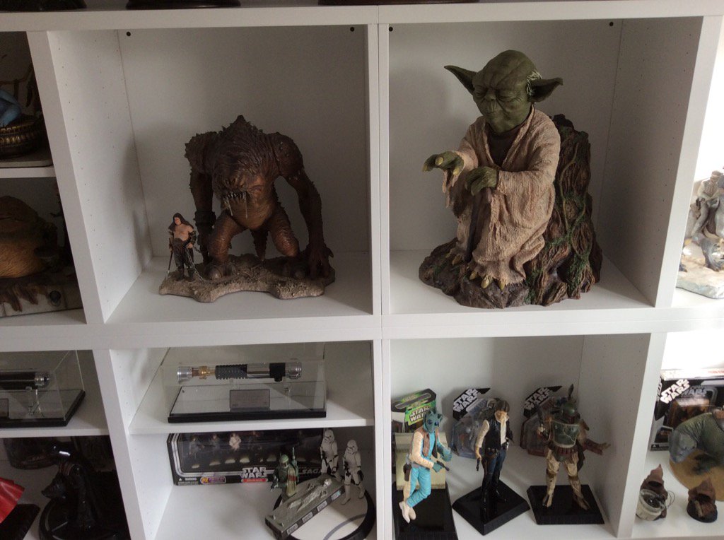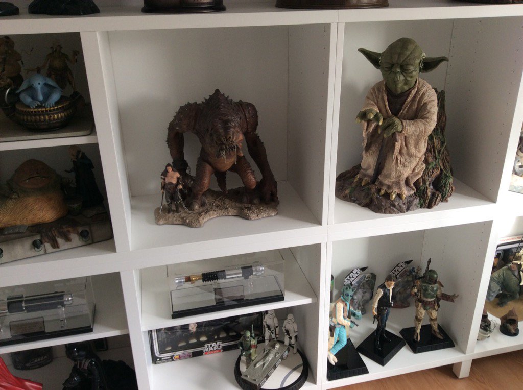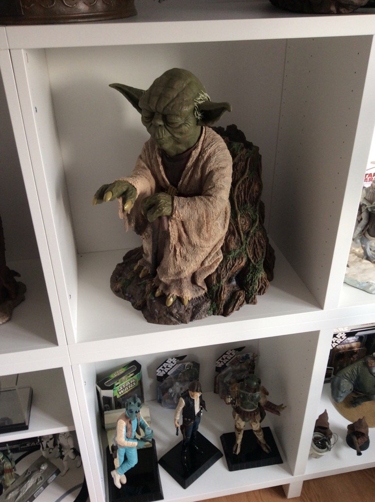 Yoda "Using The Force" de Attakus esta pieza es la mítica que en directo gana una barbaridad, depende mucho de la luz y la calidad de las fotos que parezca mejor o peor, pero en directo es una maravilla, los detalles de la base y el tronco son brutales, no podria tener mejor ambientacion la estatua, el tronco de Dagobah está clavado.