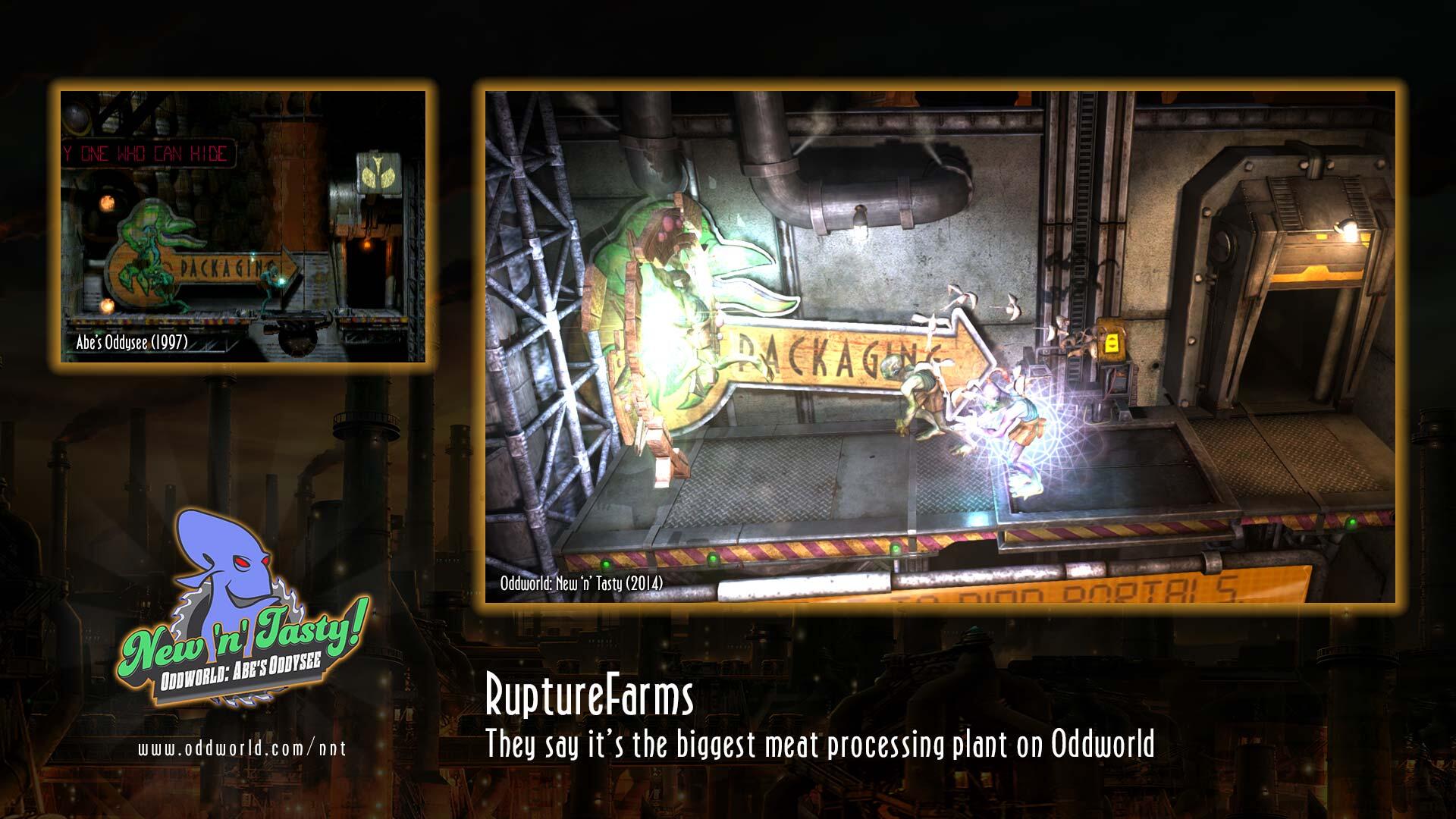 El primero de ellos será Alf's Escape, un área situada en RuptureFarms que no estaba presente en el juego original y que incluirá nuevos puzles y peligros que prometen desafiar incluso a los más veteranos de la saga. Esta secuencia extra tendrá también sus propios marcadores online y estará disponible poco después de que el juego se lance.