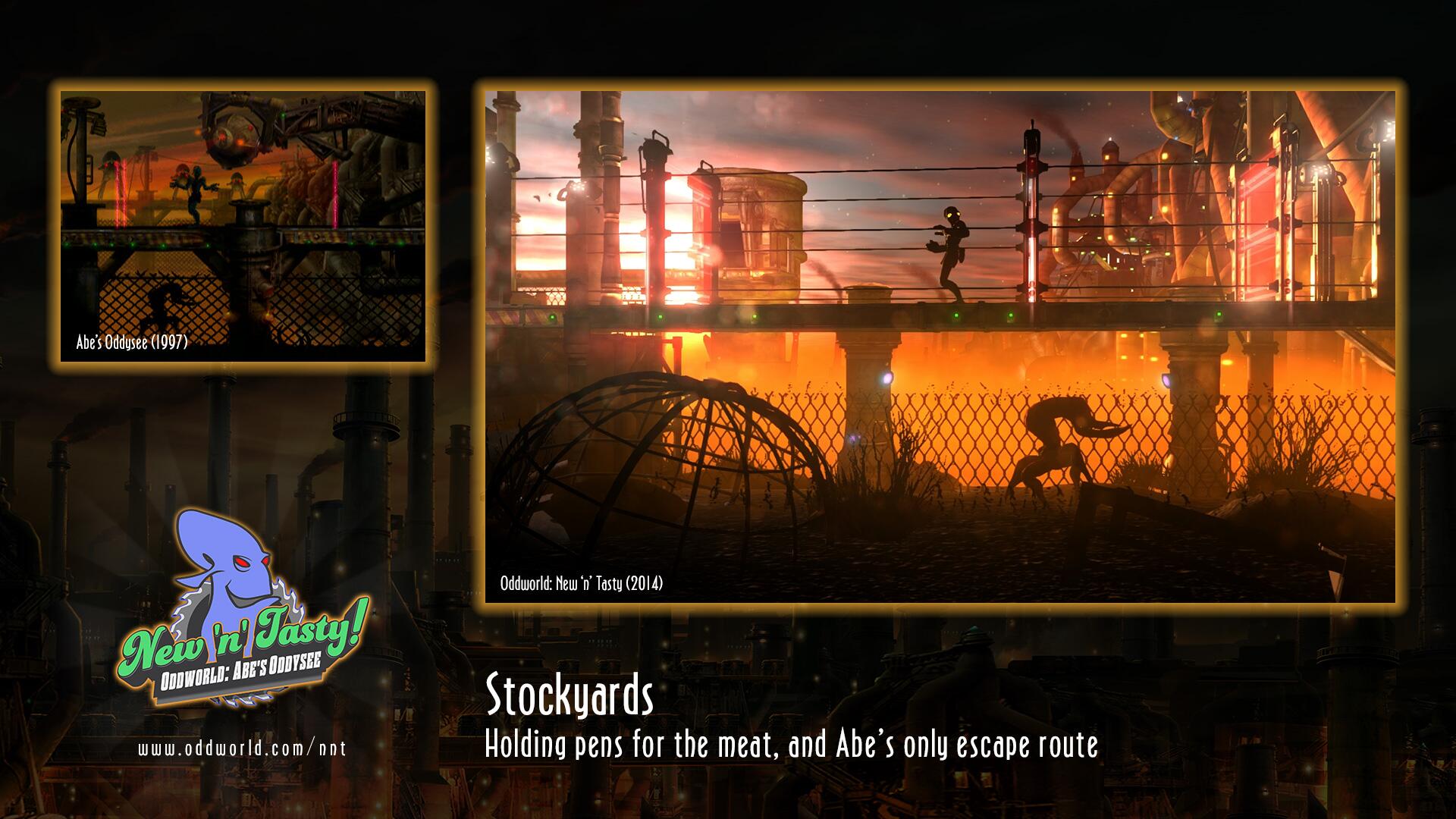 Atrás quedan aquellas viejas cinemáticas en FMV que para New 'n' Tasty! han sido sustituidas por cutscenes recreadas con el mismo motor gráfico, y que no dejan de ser el claro ejemplo de que los nuevos personajes son un vivo calco de los detallados modelados de las viejas secuencias de vídeo. La propia historia del juego, la rocambolesca odisea del buenazo de Abe por salvarse a si mismo y a los suyos de convertirse en carne de matadero en las Granjas Hostiles, se beneficia de esta mayor fluidez y coherencia entre las cinemáticas y el juego, algo parecido a lo que algunos años antes logró un claro referente del Abe's Odyssey original como fue el clásico Another World de Delphine Software -el cual, por cierto, también acaba de recibir una nueva puesta al día en alta definición.
