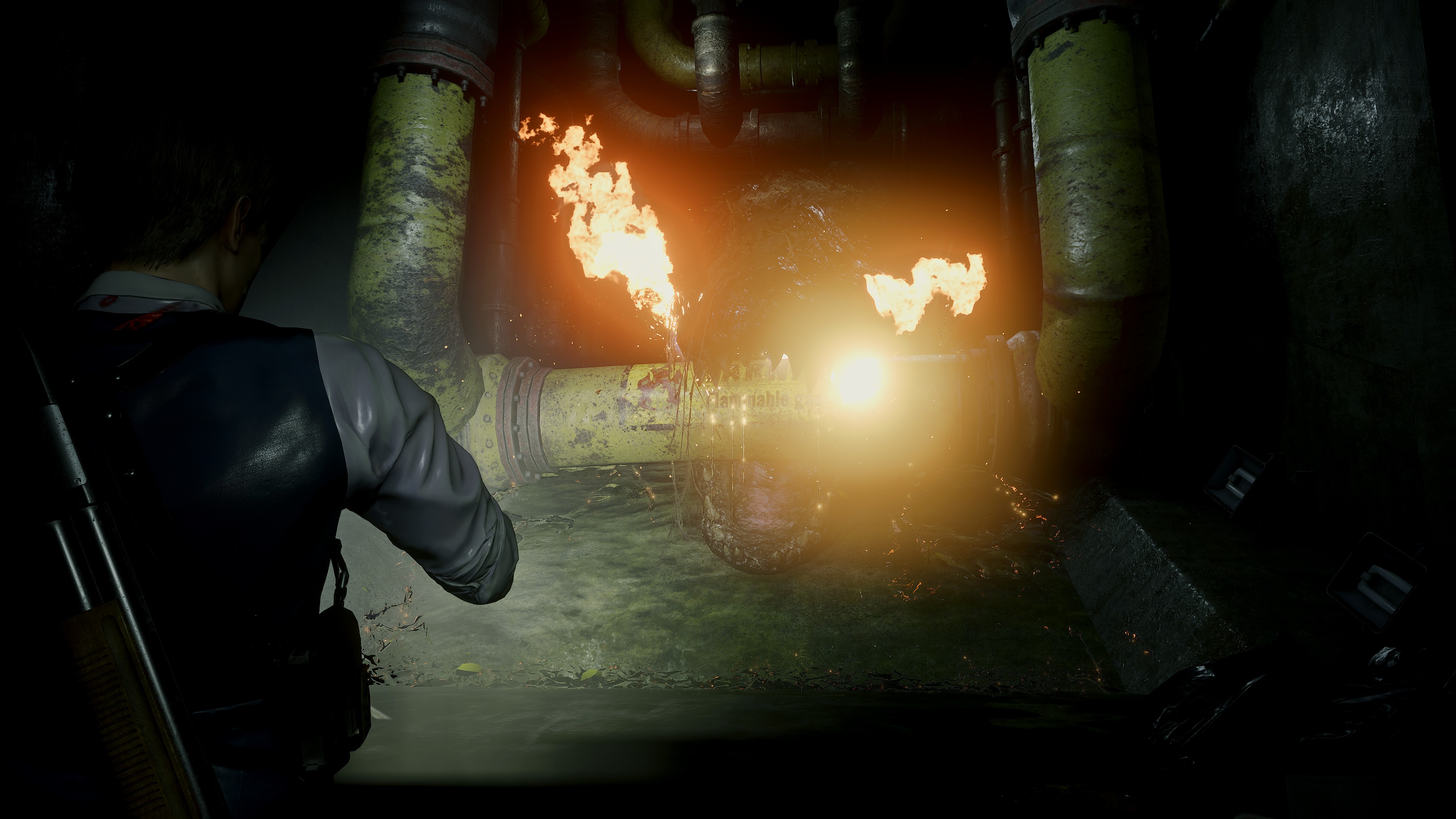 Los brillos, que parecen seña de identidad del juego, quedan geniales en muchos sitios (la cazadora de Claire, bajo la lluvia, cuando te mojas...) pero fuera de lugar en otros (en la piel seca hacen que parezca artificial, en una pared manchada de sangre cuando estás en la oscuridad y no hay luz para crear esos brillos).