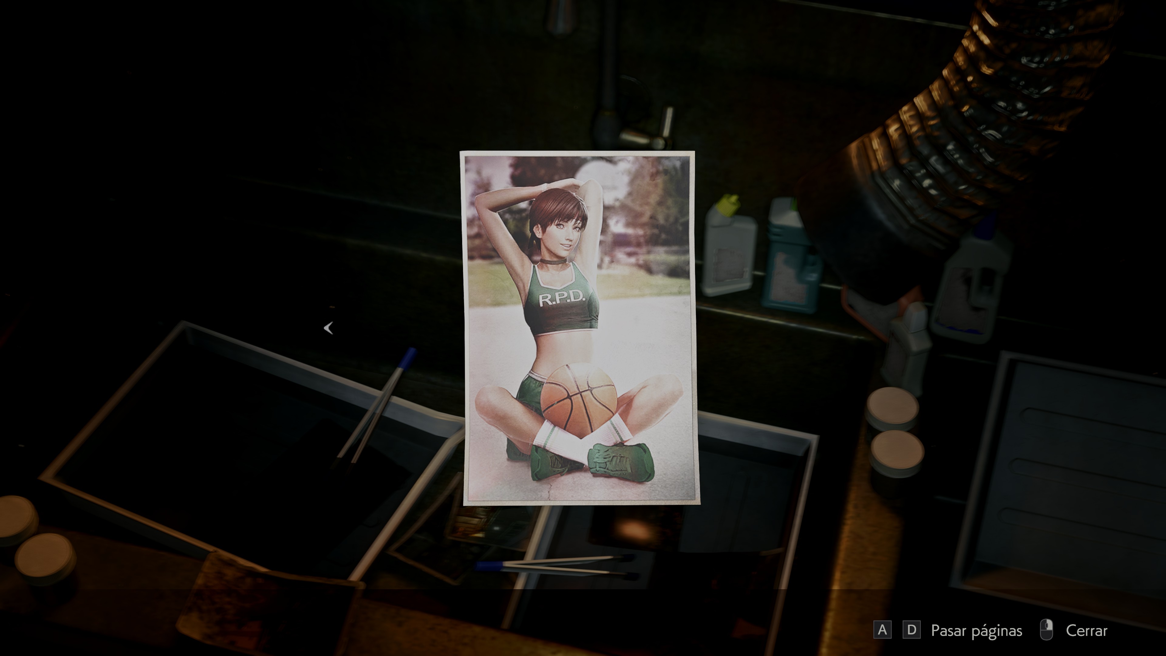 Como en el original, foto de Rebecca Chambers en el escritorio de Albert Wesker: