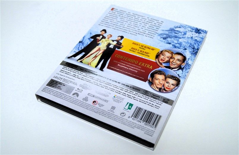 Tipo de estuche: Funda/faja de cartón con efecto metalizado, recubriendo estuche negro con carátula de diferente diseño, contenedor este de dos discos (bd + uhd)