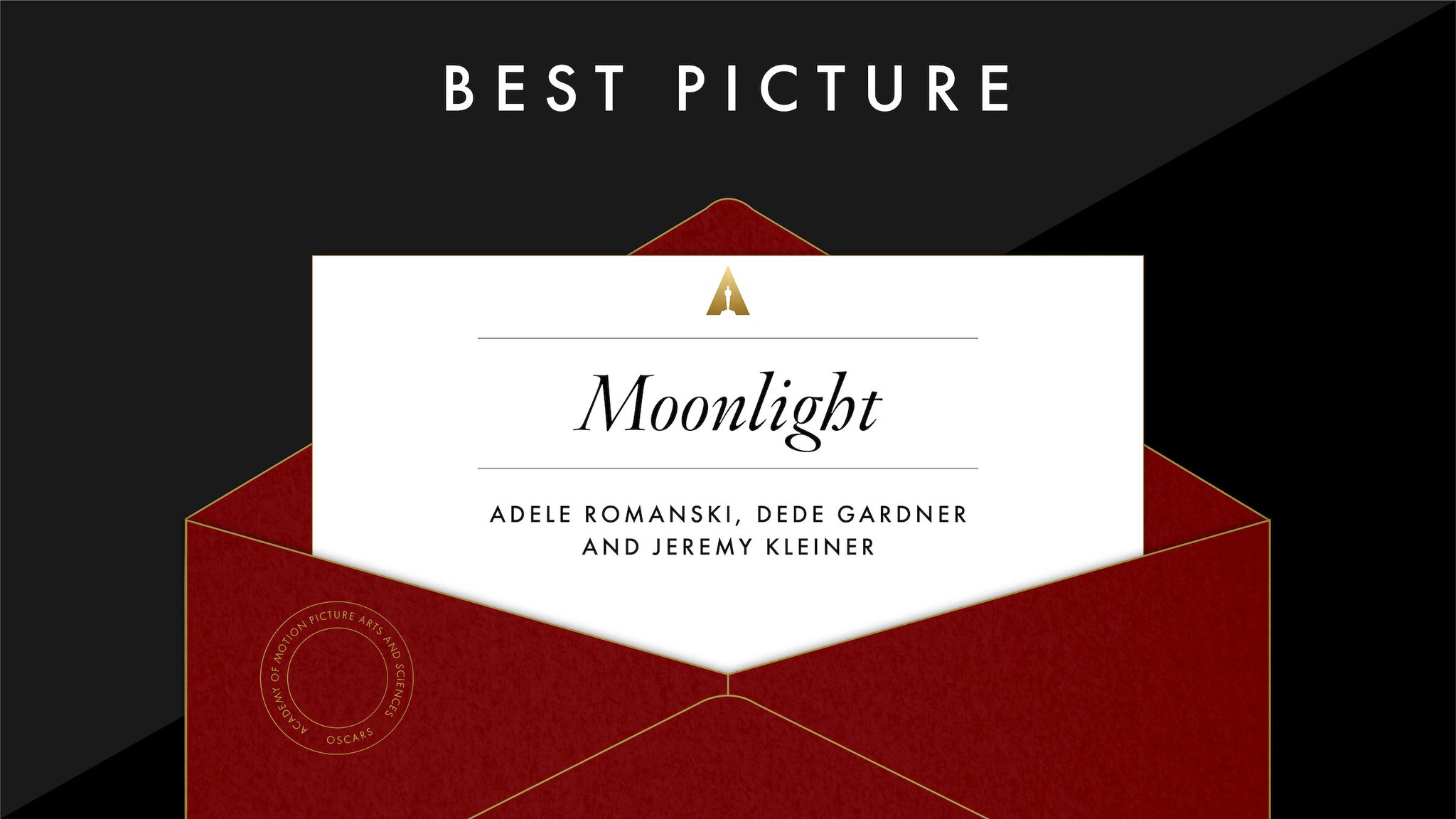 Según esta foto a la pantalla, el sobre que tenía Beatty dice "Actress in a leading role"... qué frustrante. Incluso se ve cómo se encuentra nervioso al ver el sobre que tenía, y se queda buscando otro sobre. Supongo que en ese momento los nervios le hizo pensar que no observaba bien, y se lo pasó a su compañera que ha leído La La Land.