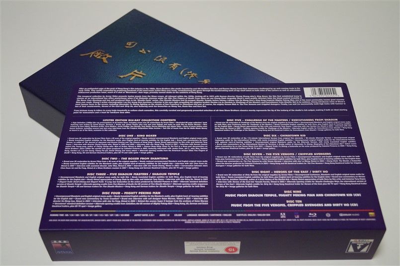 Tipo de estuche: Boxset de cartón rígido con detalles satinados metalizados y contraportada limpia, conteniendo libreto apaisado de 56 páginas con fotografías e información de los diferentes films (textos en inglés) y digibook de 9 páginas contenedoras de 8 discos bd (12 películas) y 2 discos cd con temas de 6 películas