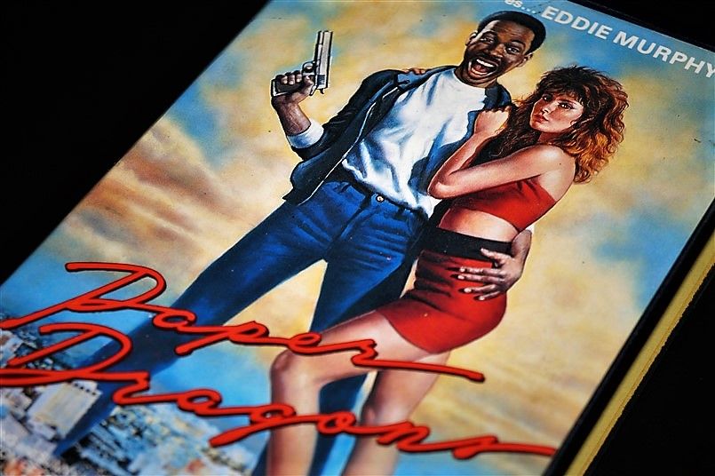 Ni cortos ni perezosos se pusieron manos a la obra y realizaron una portada en la que calcaron prácticamente el careto de Murphy, con su inconfundible sonrisa, agarrado a una tía buenorra con el pelo cardado tan de moda en la época, con la ciudad bajo sus pies. En la parte superior dejan claro que no se trata de Eddie Murphy, pero el nombre de este es de mayor tamaño, para en un rápido vistazo ver su careto y su nombre resaltado encima, quedando claro lo que pretendían con esa jugada. Y doy fe que lo conseguían.