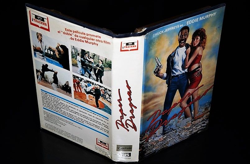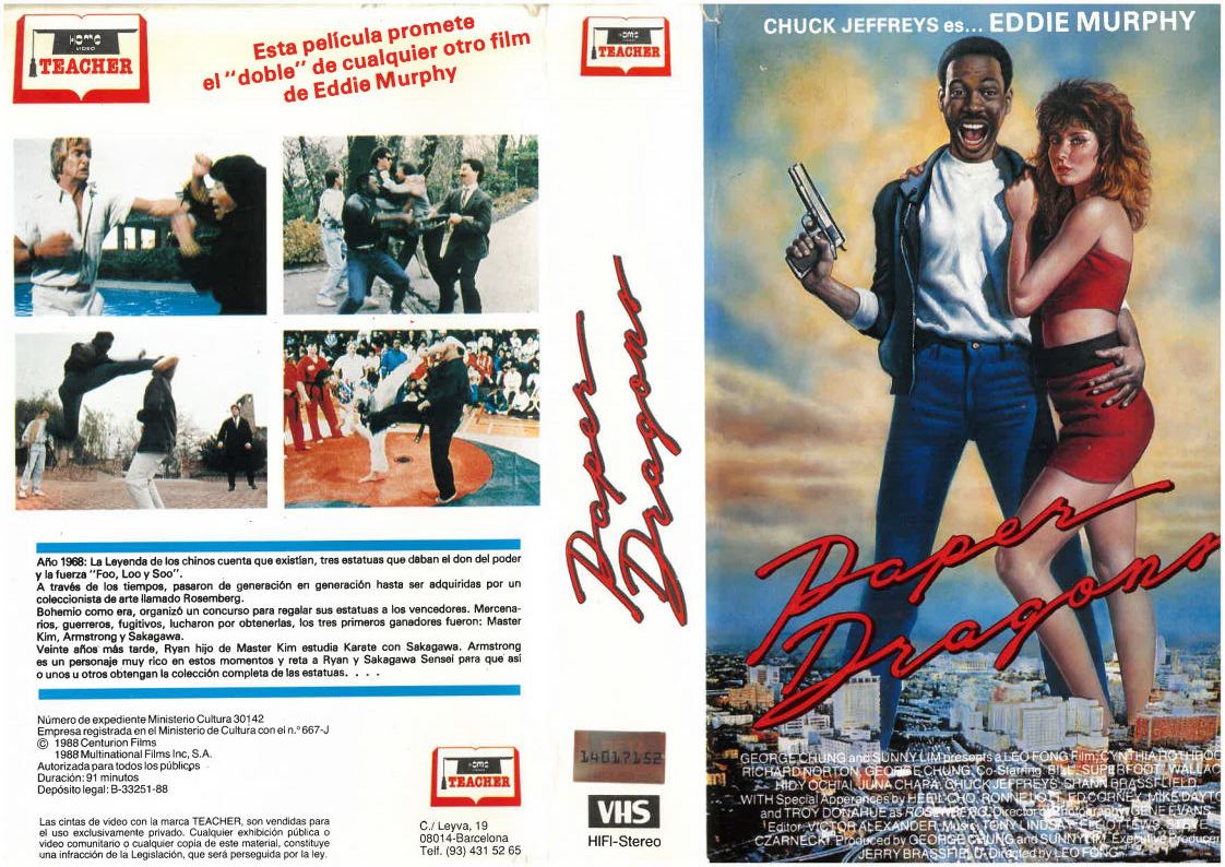 Pues bien, cuando los distribuidores en España repasaron la película, vieron que uno de los protagonistas secundarios de la película (un tal Chuck Jeffreys), alumno de la escuela y amigo del protagonista principal, tenía un parecido razonable con Eddy Murphy, que en aquellos años estaba en lo mejor de su carrera (Entre pillos anda el juego, Superdectective en Hollywood, Limite 48 horas, El chico de oro...) así que debieron de pensar que sería una buena publicidad ponerlo en la portada e intentar colárnosla como una película del astro de color.