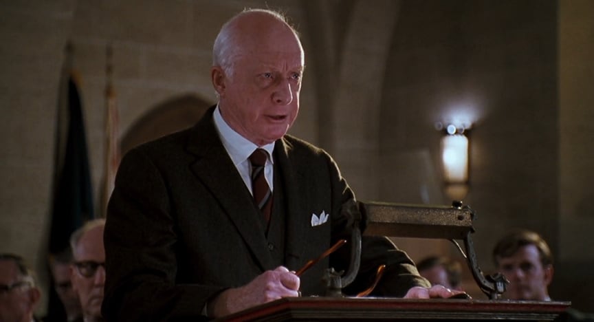 Reconozco que hay un factor, que Alex ya ha señalado, que me influye de manera decisiva: el factor Robin Williams. Solo asomar muy al inicio del film su cabecita por detrás del resto de profesores, cuando durante la ceremonia inaugural del curso el director, el temible Mr. Nolan (el hitchcockiano Norman Lloyd),