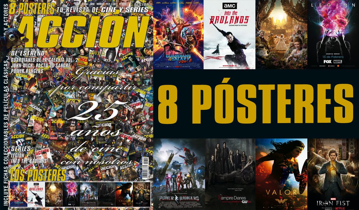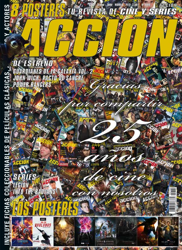 PORTADA Y POSTERS REVISTA ACCION CINE MES ABRIL 2017: ESPECIAL 25 AÑOS: