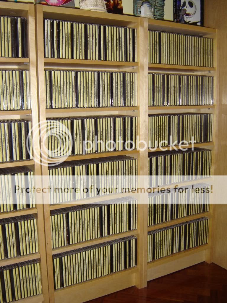 Bollywood, te puede parecer una bobada, pero es que yo no uso las cajas para nada. Hace tiempo si me gustaban, pero ahora me da igual tener una estantería llena de cajas de colores. No las aprecio, sólo me sirven para ocupar sitio y criar polvo. Lo que quiero son los discos, las carátulas ni las miro, los folletos que vienen dentro, igual... Viendo esto, prefiero meter los discos en un archivador para cuando los quiera ver y las cajas (que, pese a todo, me da pena tirarlas) las guardo en el trastero, organizadas con una lista y en cajas bien cerradas para que no entre polvo. En el trastero no molestan, pero es que en el salón o en la habitación no me caben.