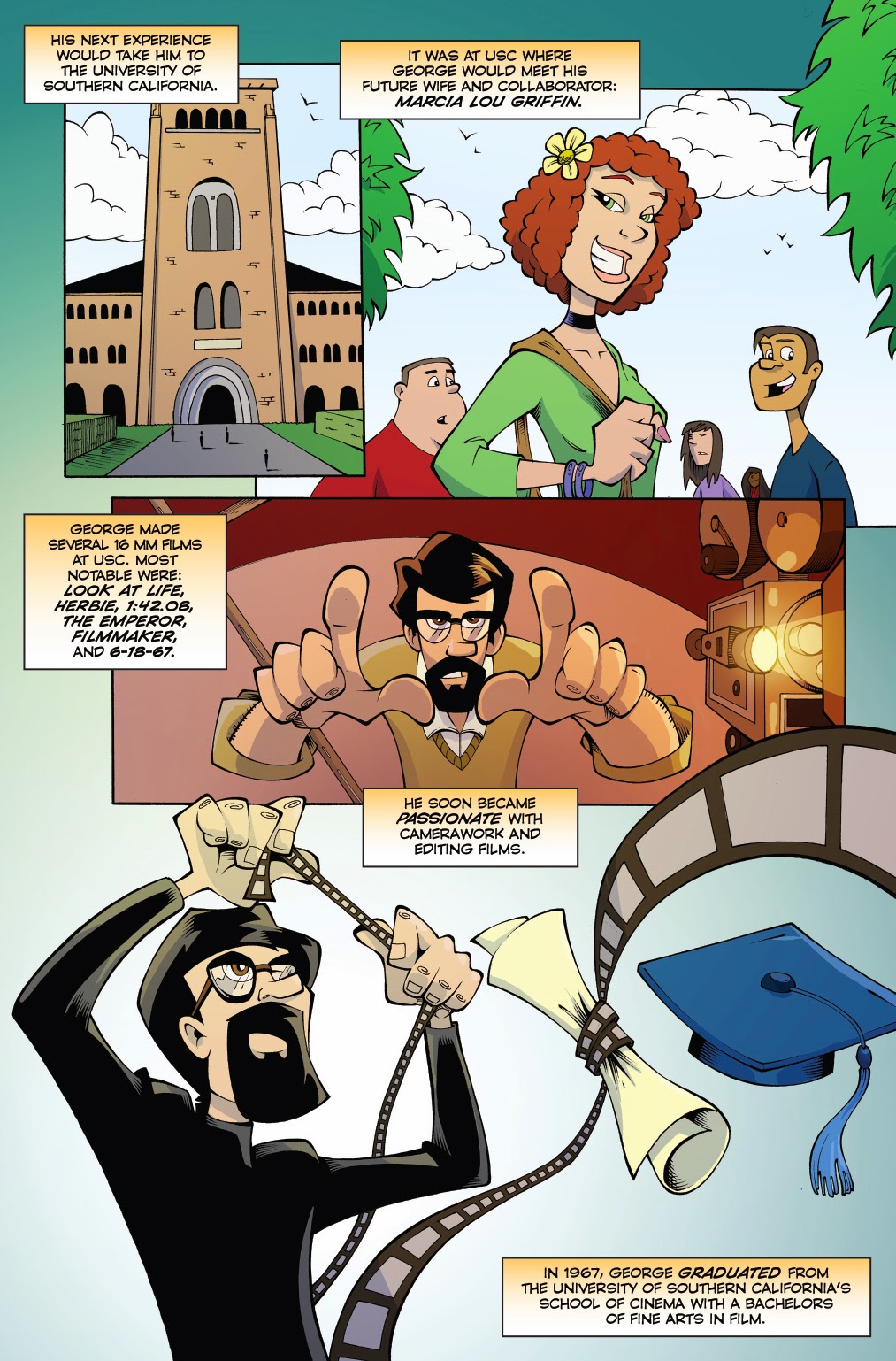 The Bearded Trio are pleased to officially announce the launch of George Lucas: Rise Of An Empire graphic novel from BlueWater Comics. We are also pleased to show you for the first time a variant cover too (see below) plus some extra scenes from the novel. The graphic novel will be available from ComicFleaMarket.com on 3rd April plus you can download an electronic version from Itunes, Kindle and practically anywhere else that sells graphic novels for your reading device.