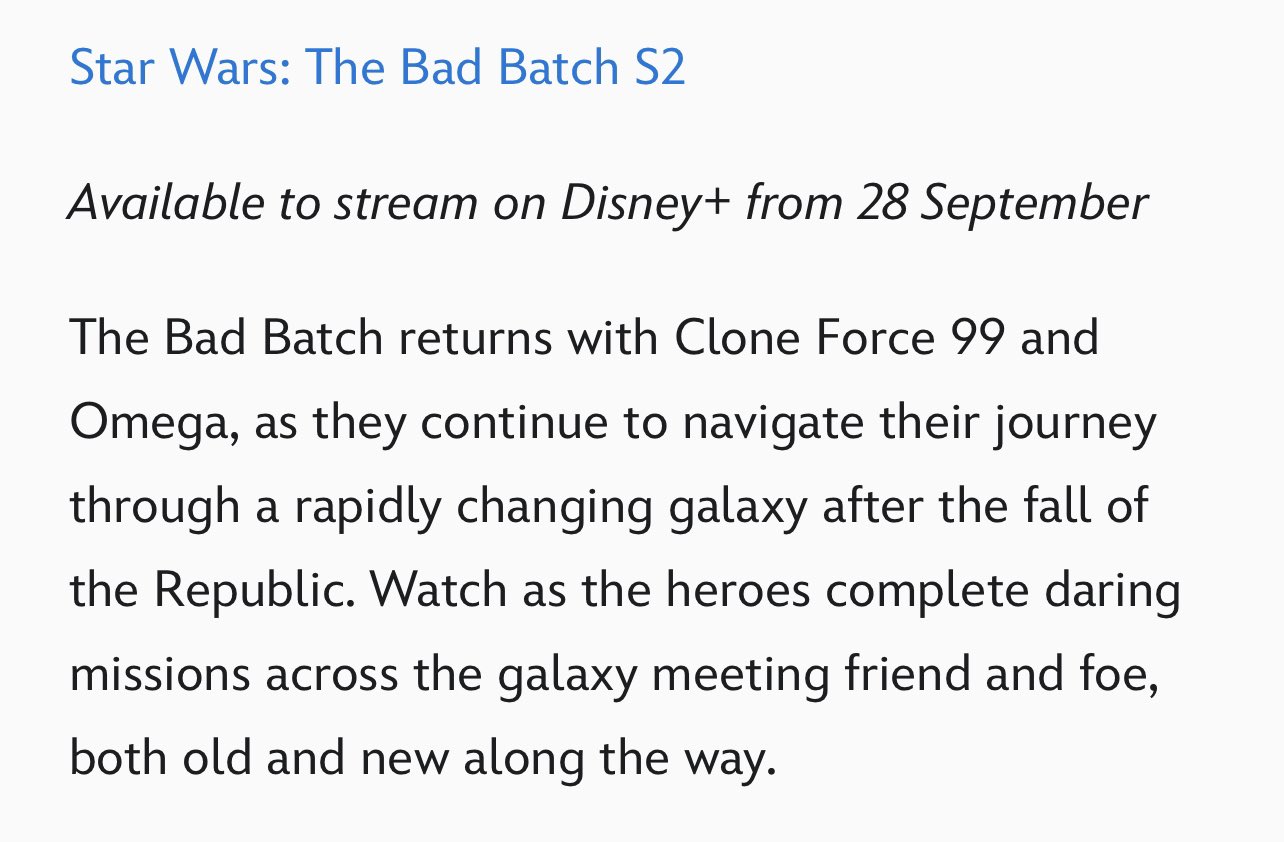 Ya no aparece anunciado su estreno en primavera sino como parte de la sección Coming Soon sin más especificaciones con lo que parece que irá después de Obi-Wan en julio o agosto