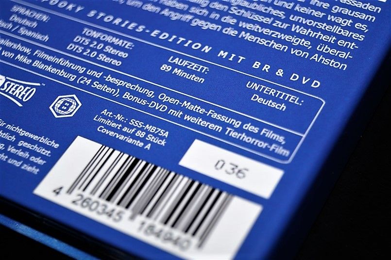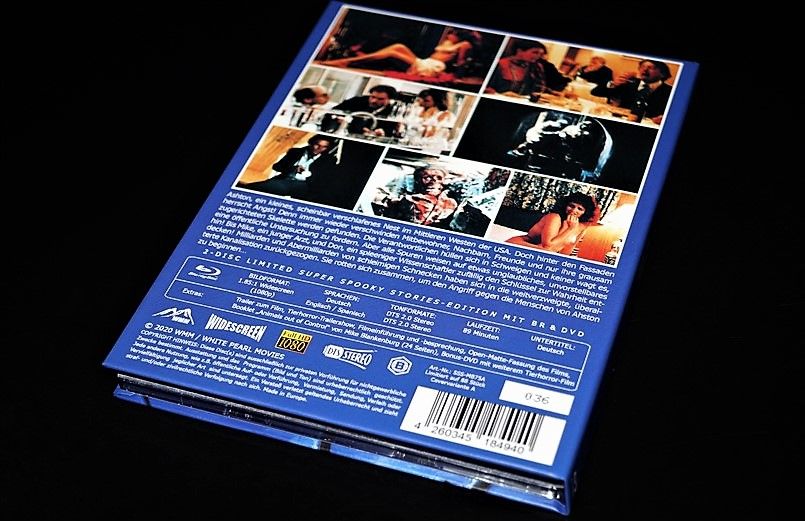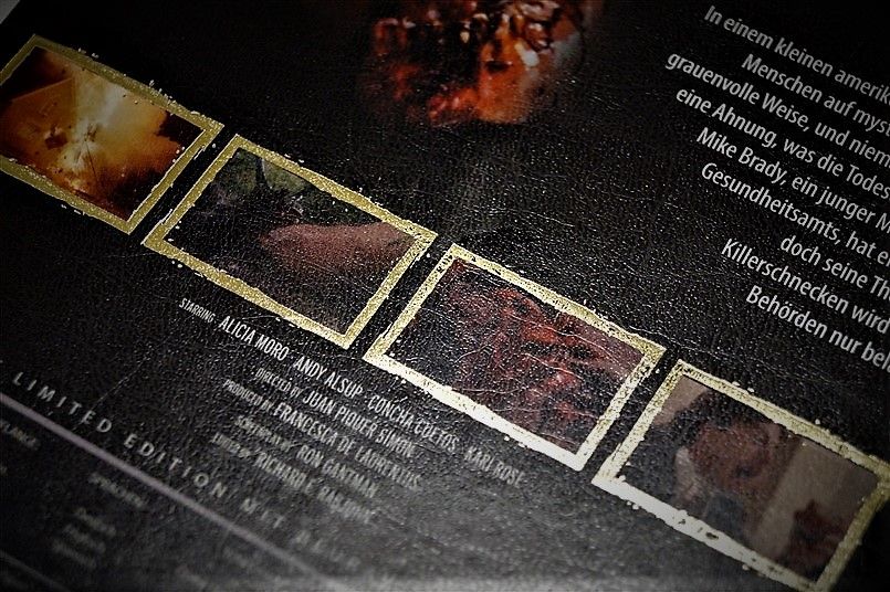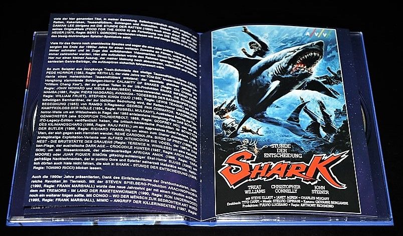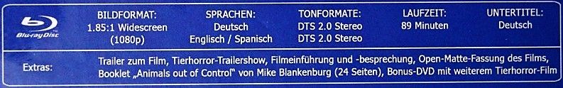 Tipo de estuche: Digibook, limitado y numerado a 88 unidades, con 24 páginas con fotografías en información de películas de temática "animales fuera de control" (textos en alemán), conteniendo 2 discos (bd+dvd)