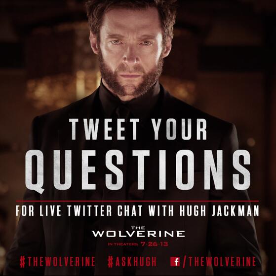 Hugh Jackman will use Twitter on Thursday to answer fans' burning questions about The Wolverine movie. 20th Century Fox exclusively told Mashable that the May 2 Twitter chat will begin at noon ET, and will involve Jackman responding to questions via video. People can tweet questions using hashtags #AskHugh and #TheWolverine before and during the Q&A. Answers will appear on the @RealHughJackman or @WolverineMovie accounts.