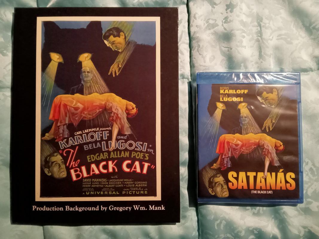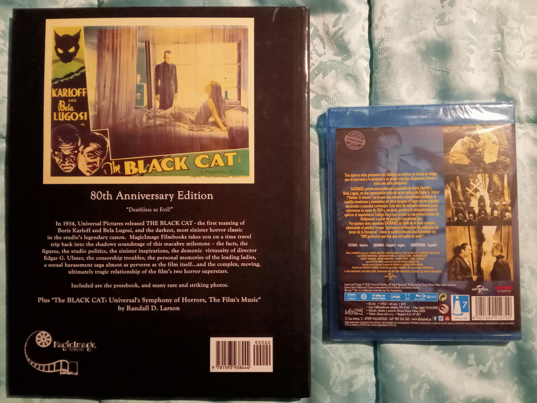 A estrenar, película de culto The black Cat 1934 titulada en España Satanás, especial coleccionistas, primera colaboración Lugosi karloff, muy controvertida por su temática. libro en inglés ilustrado 125 páginas tapa dura y película en Blu-ray precintada edición española. Precio lote 35€ no se incluye envío.