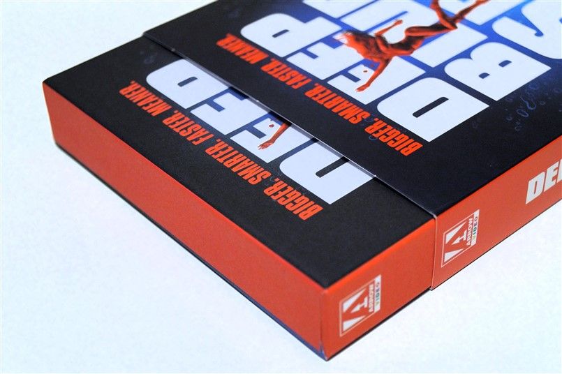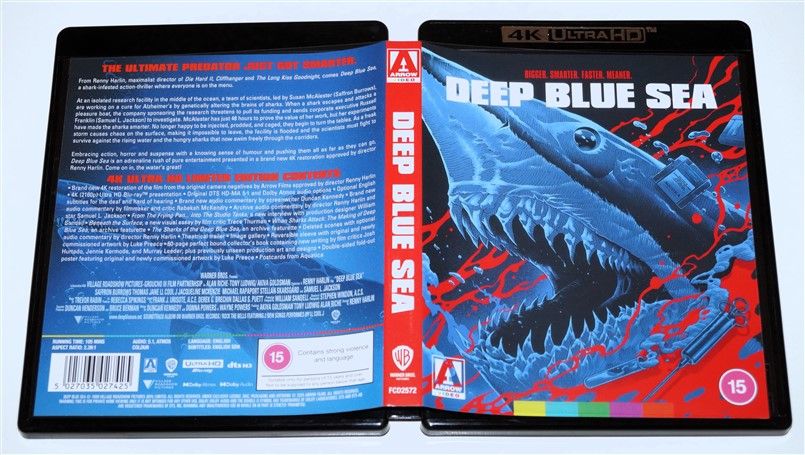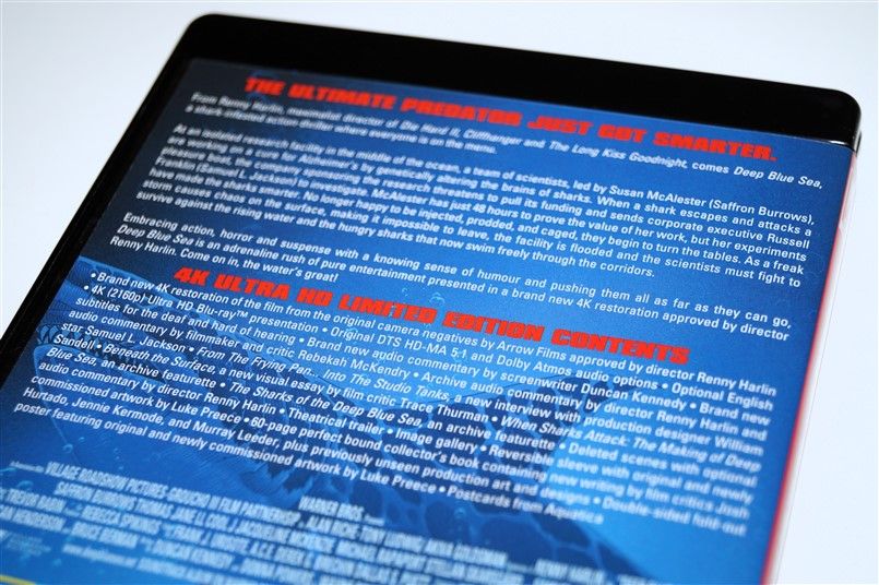 Tipo de estuche: Funda/faja de cartón recubriendo boxset de cartón robusto con contraportada limpia, albergando en su interior 3 postales, póster reversible, libreto de 60 páginas con fotografías e información del film (textos en inglés) y estuche plástico negro con carátula reversible y disco uhd